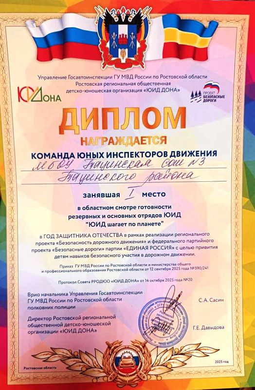 Сегодня в Белой Калитве состоялся зональный смотр-конкурс отрядов ЮИД Волгодонской и Шахтинской зоны "ЮИД шагает по планете" . Отряд "БОНД" Тацинской школы № 3 заняли первое место и в ноябре примут участие в финале конкурса в Ростове-на-Дону.