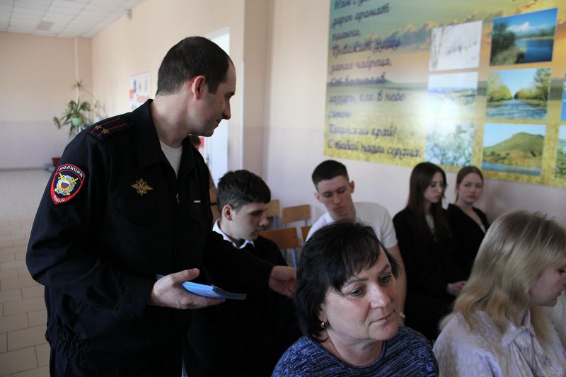 25 марта 2026 года на базе Тацинской школы №1 прошла профилактическая встреча с сотрудниками полиции Бобровой Еленой Михайловной, инспектором по делам несовершеннолетних Отдела МВД России по Тацинскому району, Исаевым Алексеем Владимировичем, заместителем начальника Отдела МВД России по Тацинскому району, руководителем группы по работе с личным составом.