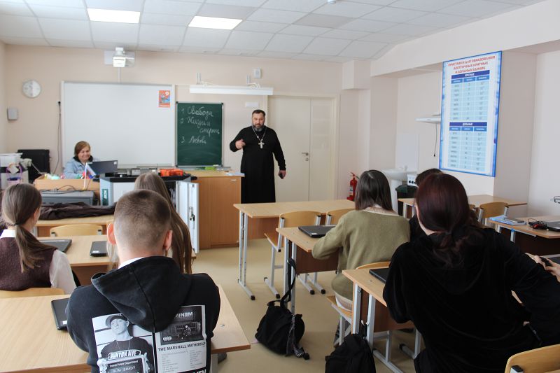 23 апреля для обучающихся 9 класса прошла тематическая встреча со священником Павлом Петровичем Почтовым, настоятелем храма Святителя Спиридона Тримифунтского. Отец Павел затронул тему мира, любви, ценности жизни. Учащиеся с интересом слушали отца Павла, задавали вопросы.