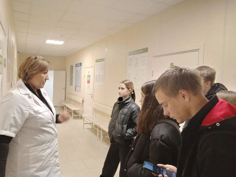 Экскурсия началась с поликлинического отделения, где старшеклассники познакомились с работой врачей первичного звена: терапевтов, педиатров, узких специалистов. Школьникам рассказали, как проходит приём пациентов, какие задачи решают врачи и медицинский персонал в ежедневной практике.