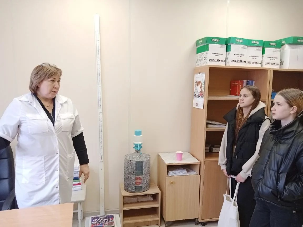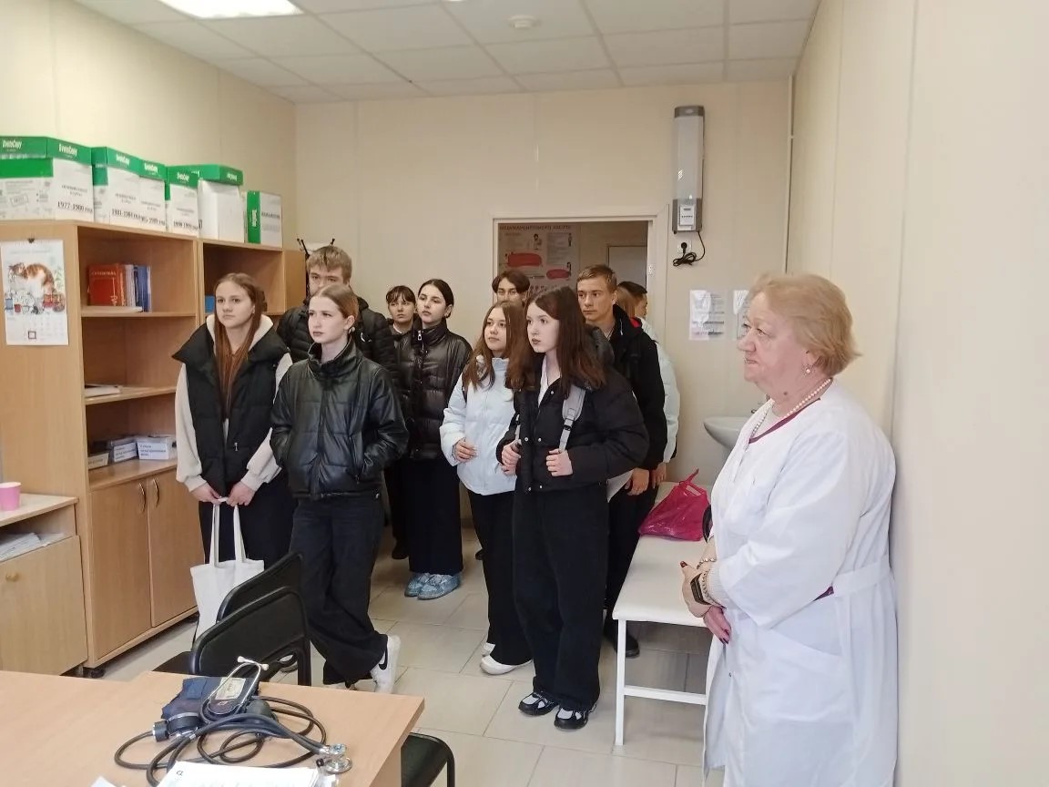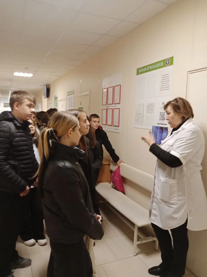 Экскурсия началась с поликлинического отделения, где старшеклассники познакомились с работой врачей первичного звена: терапевтов, педиатров, узких специалистов. Школьникам рассказали, как проходит приём пациентов, какие задачи решают врачи и медицинский персонал в ежедневной практике.