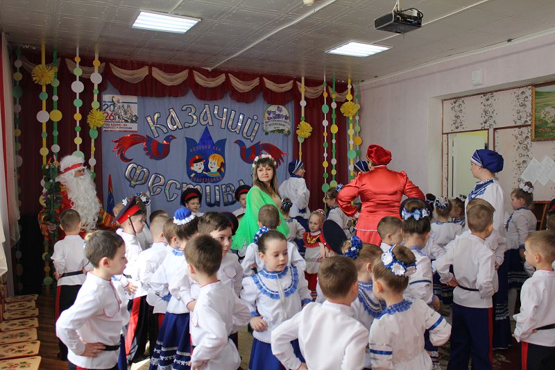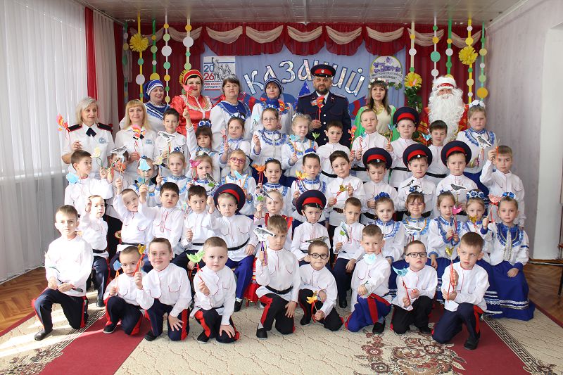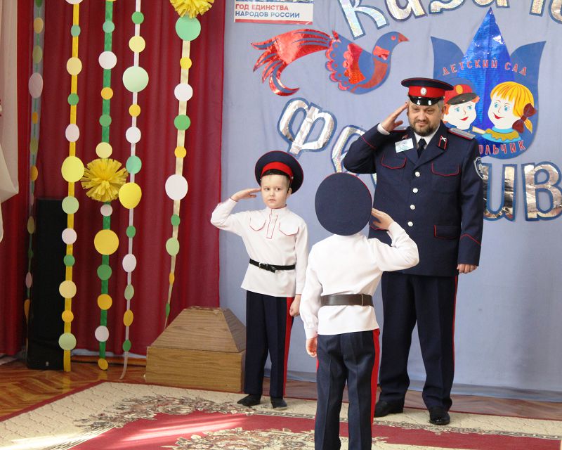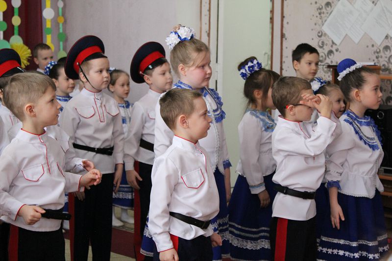 Одно из самых ярких событий - казачий сход, в ходе которого воспитанников детского сада принимают в ряды юных казачат.