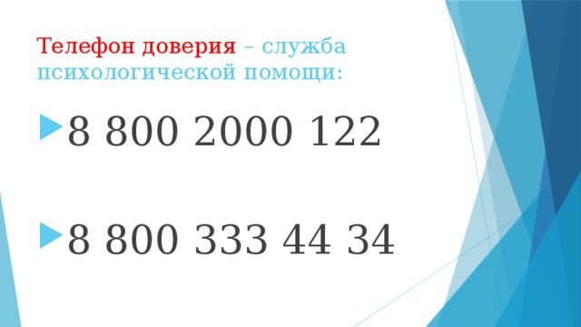8 (800) 333-44-34 — бесплатная кризисная линия доверия по России. Работает с депрессивным состоянием и суицидальными мыслями, сложными жизненными обстоятельствами, постоянным чувством тревоги и страха, состоянием сильного стресса, болезнями и смертью близких людей.