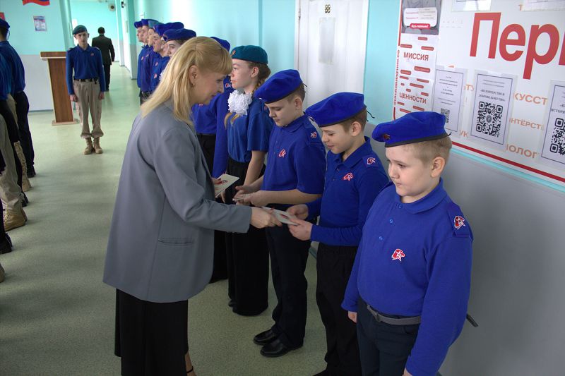 С напутственными словами к ребятам обратилась Елена Попова. Она поздравила ребят с вступлением в ряды ЮНАРМИИ и отметила, какая важная и ответственная задача на них теперь возлагается: быть защитниками страны.